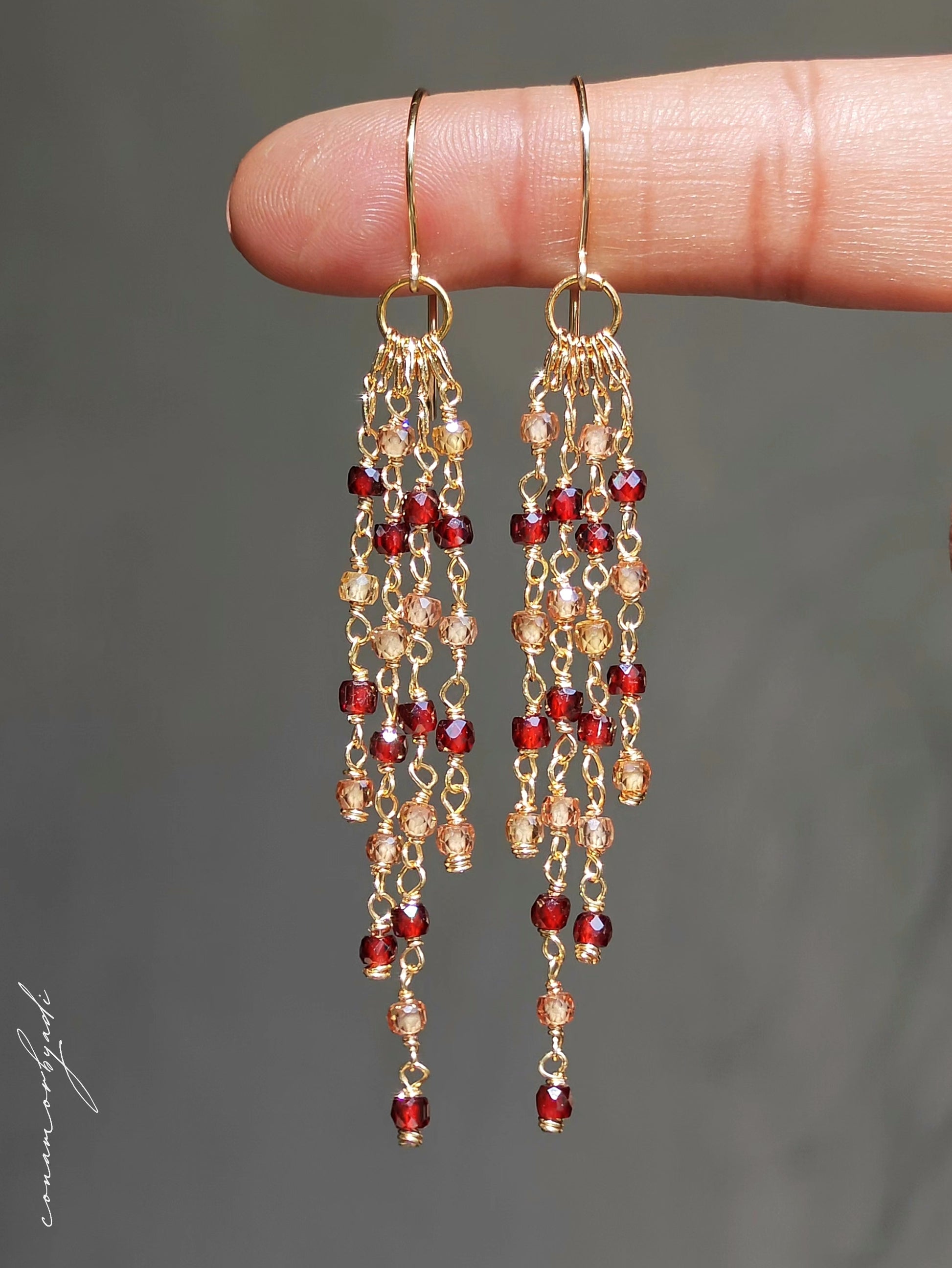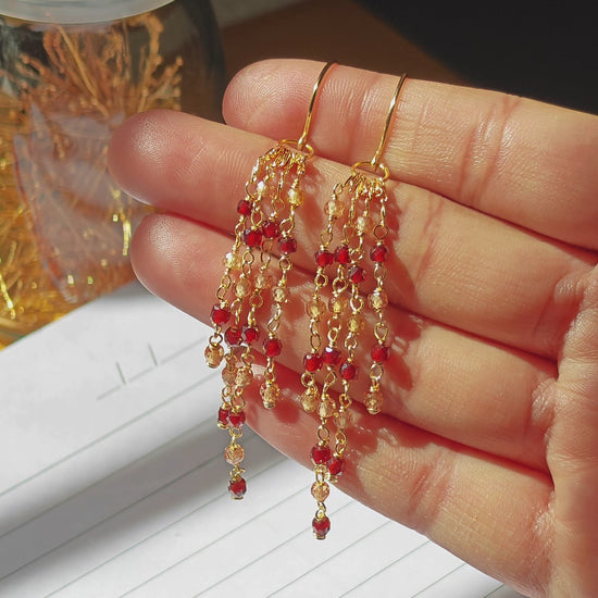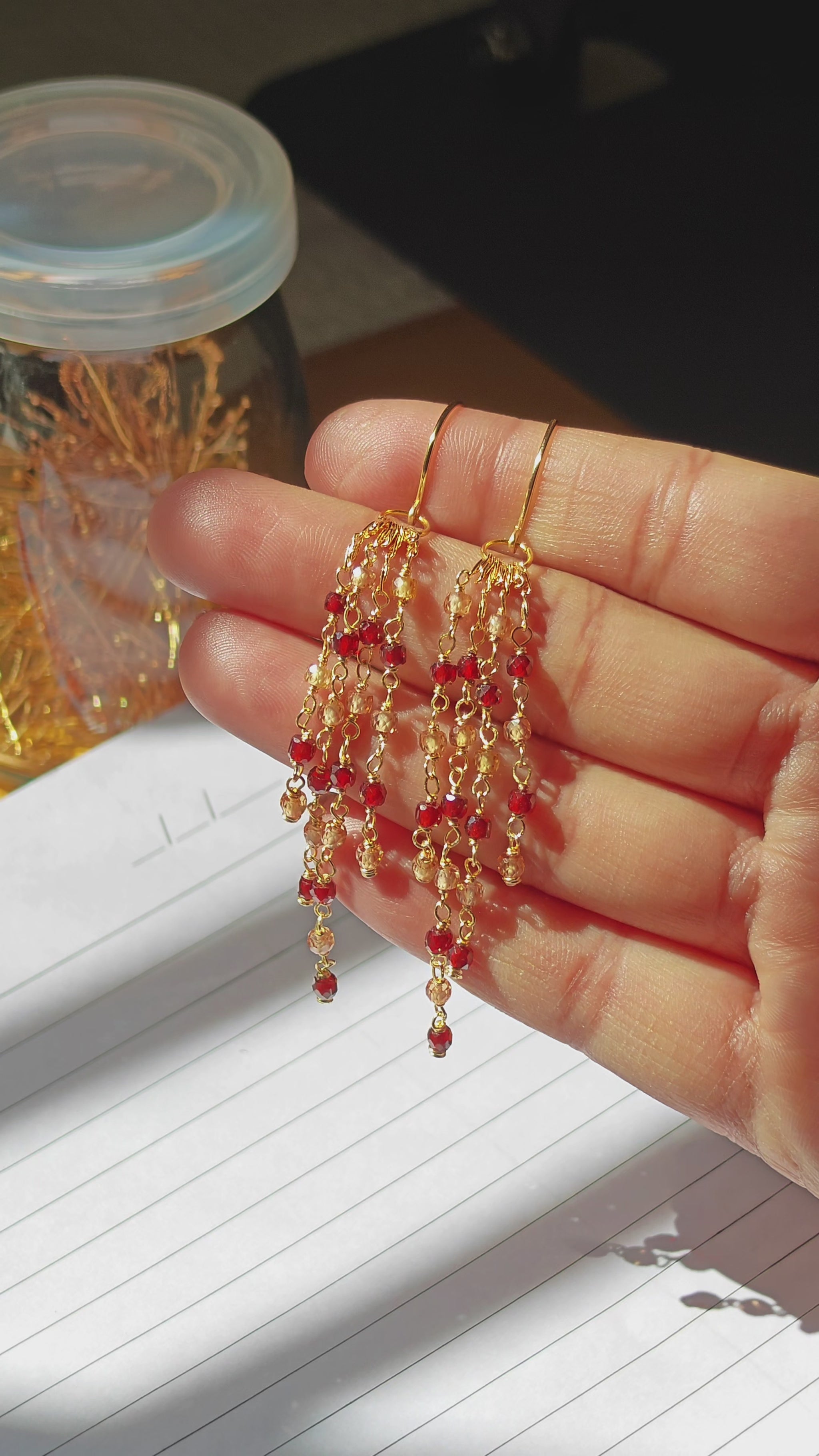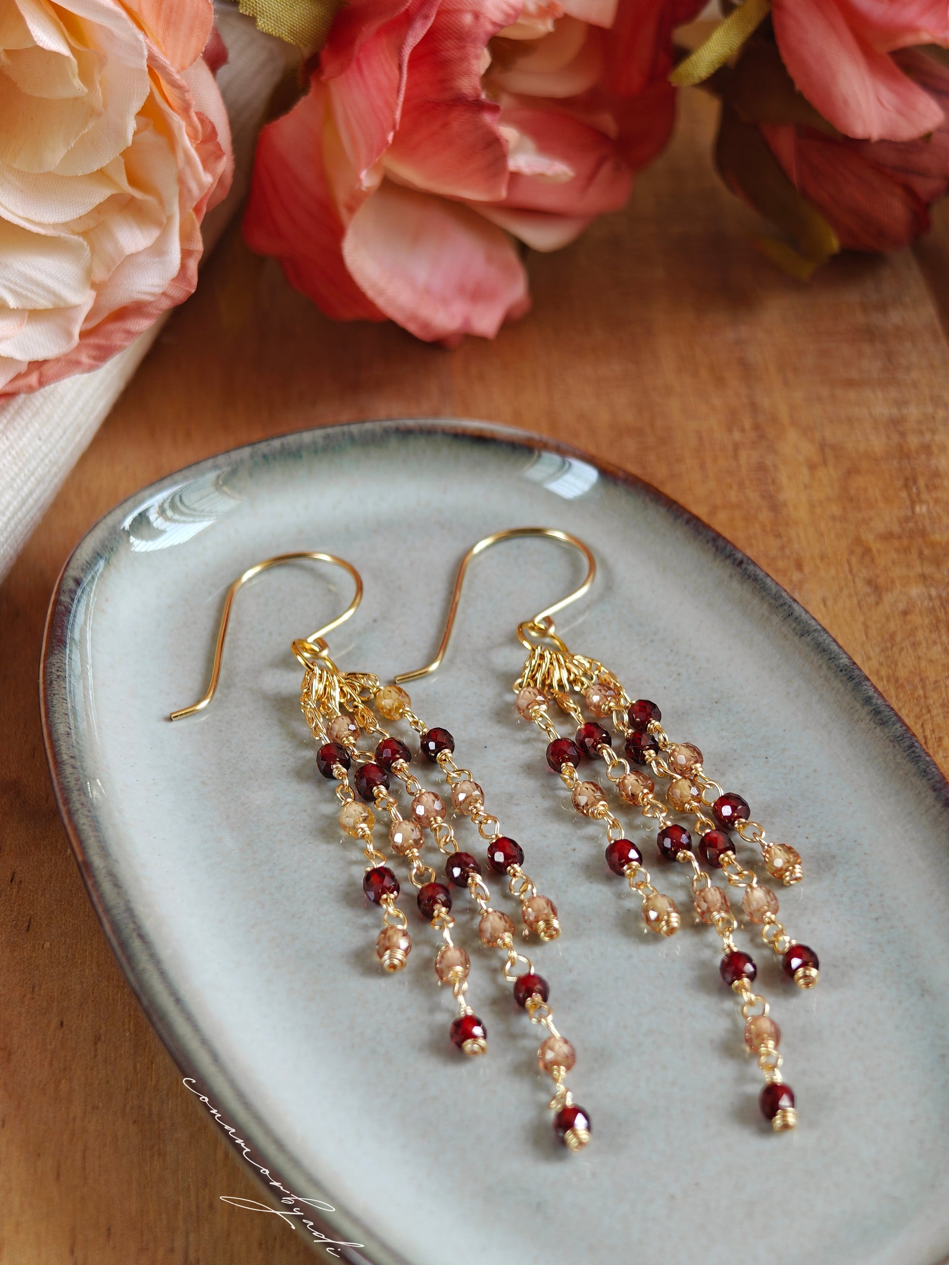 Inspired by the rich pomegranate hue, Anara Earrings feature high-quality stones with a natural, unedited shimmer. Crafted in 14K gold-plated, anti-tarnish finish.