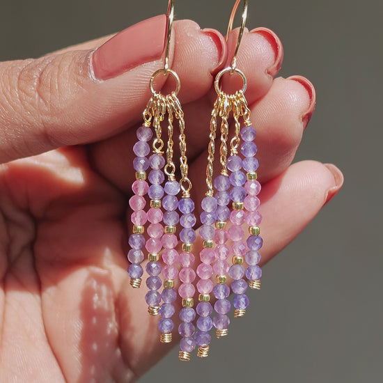 Discover your new favourite shade with Anya - Amethyst earrings. Made with Monalisa beads and 14K gold-plated metal, these earrings are perfect for starting off the year in style. The shimmering stones and warm gold accents are sure to catch the eye.