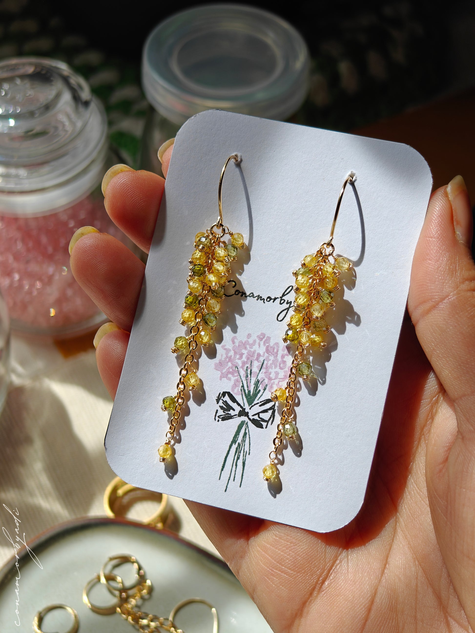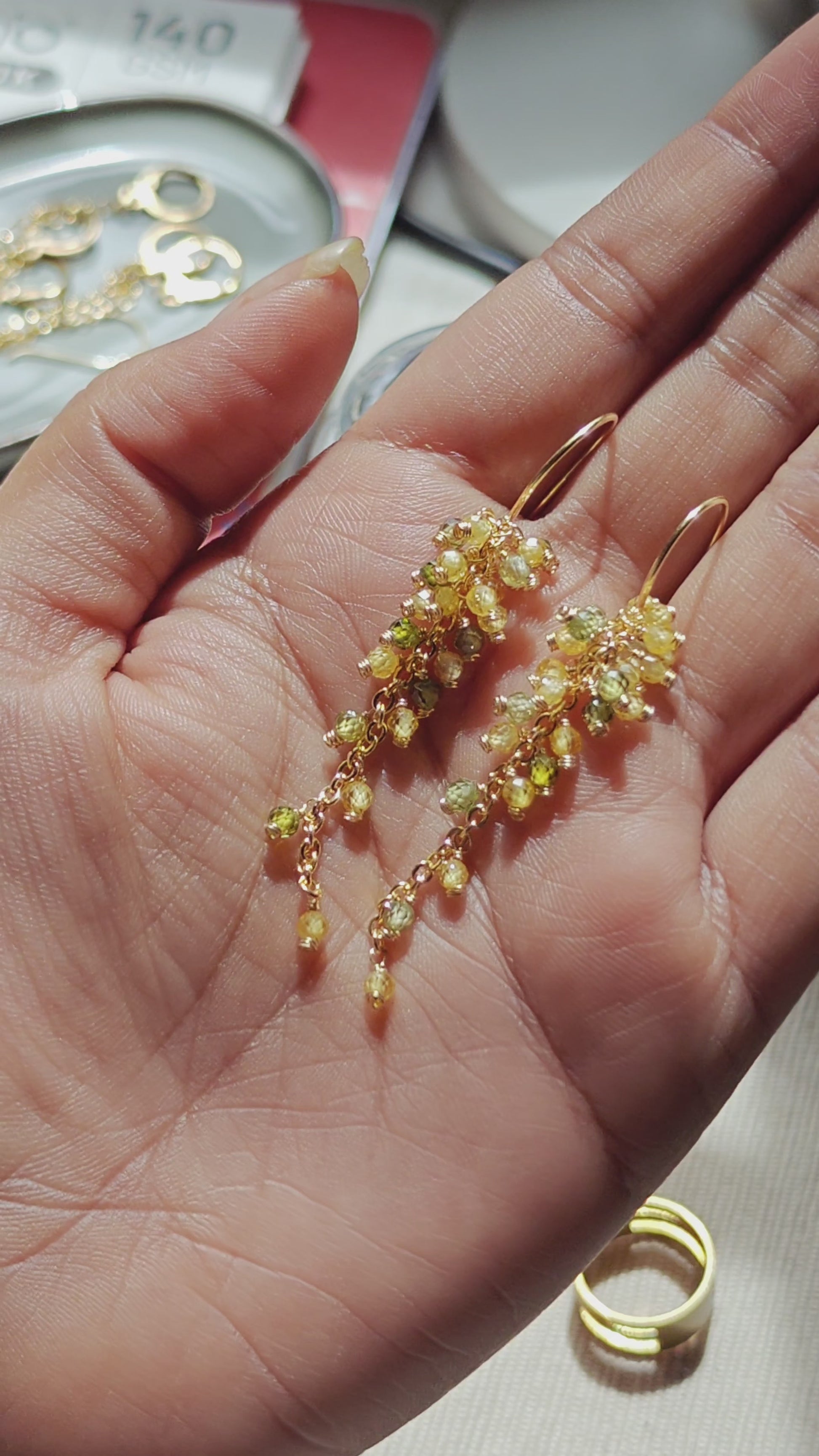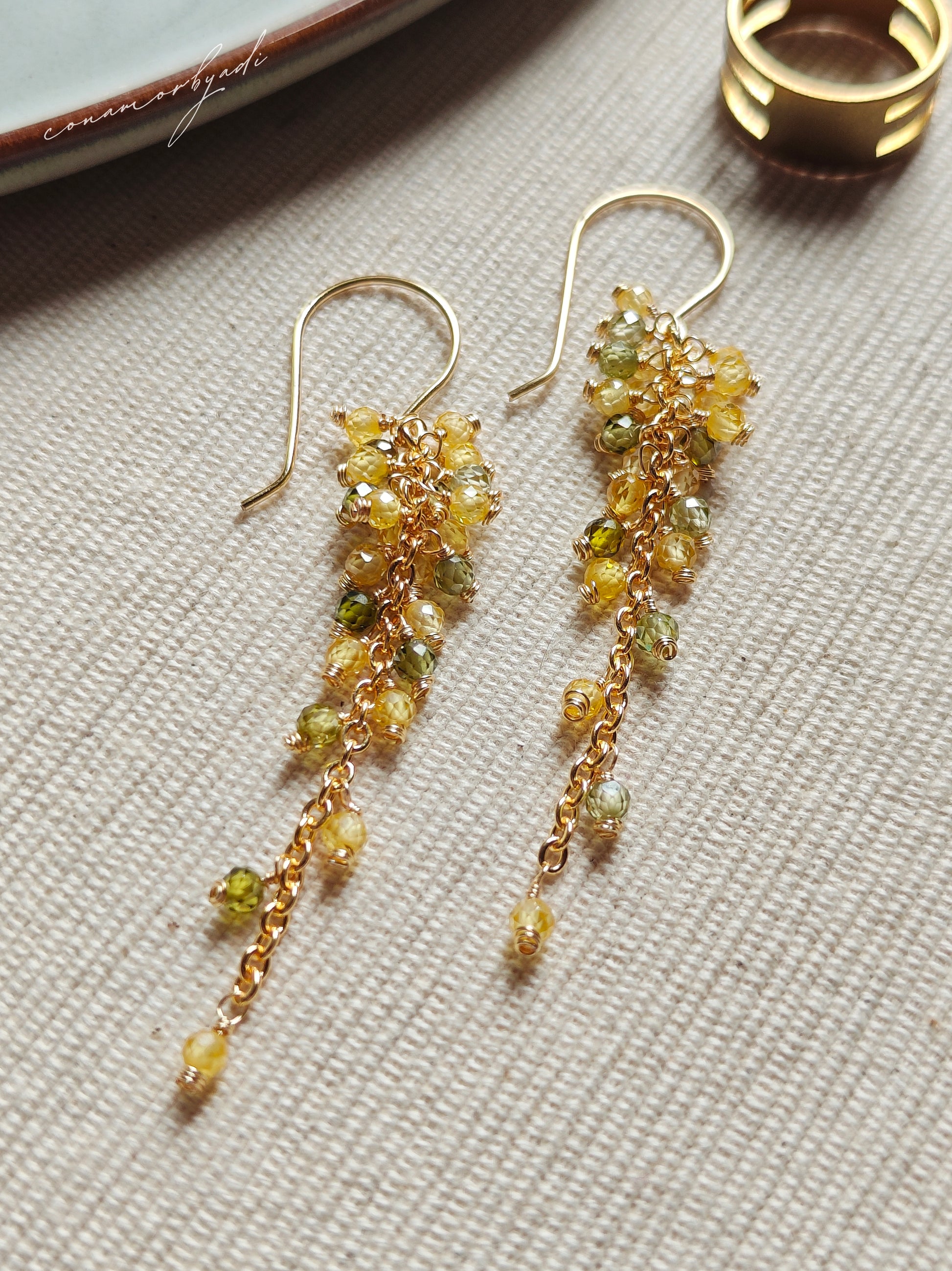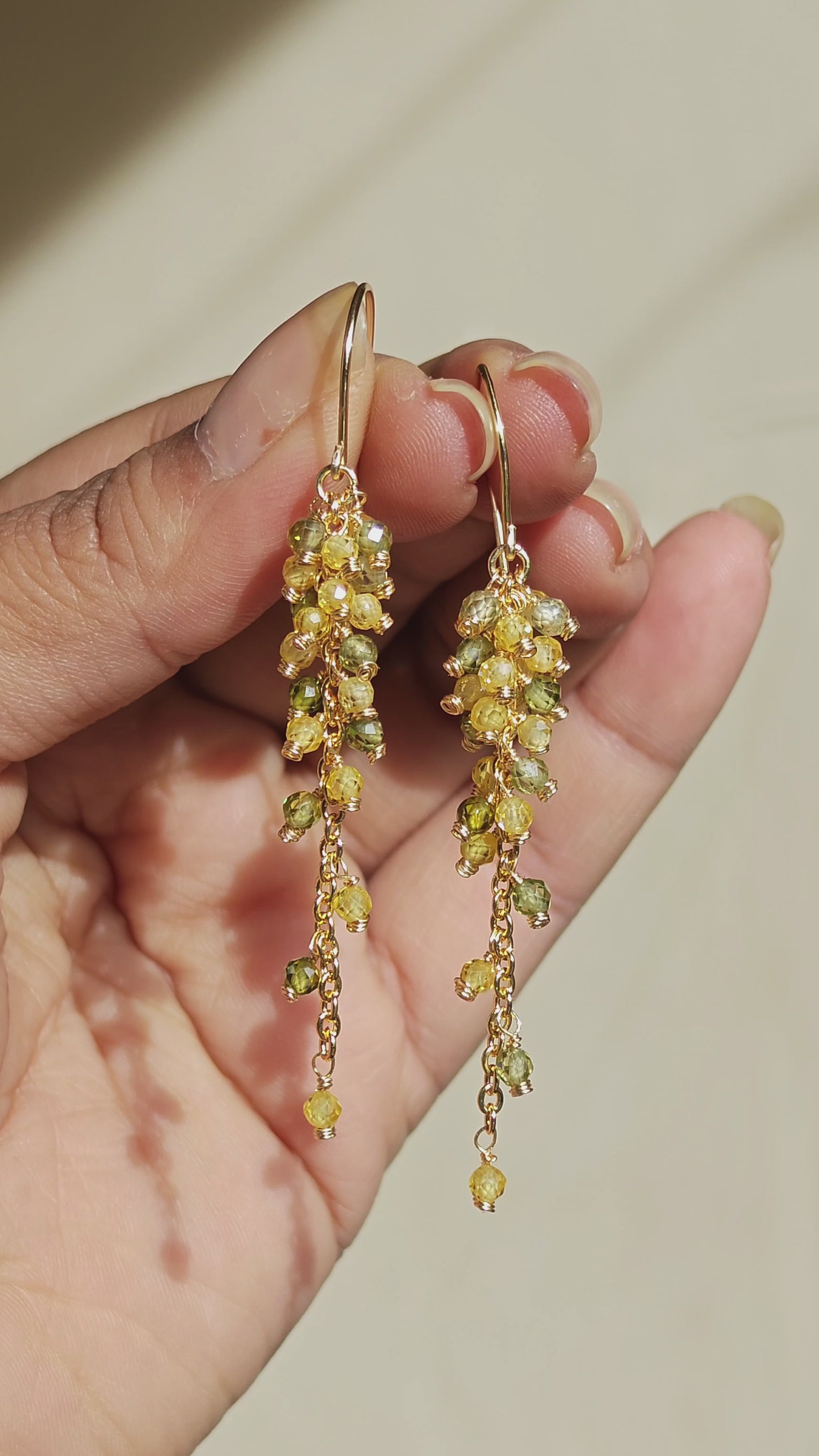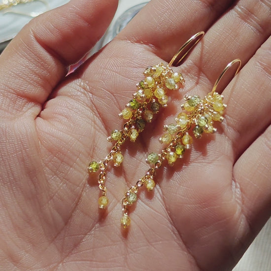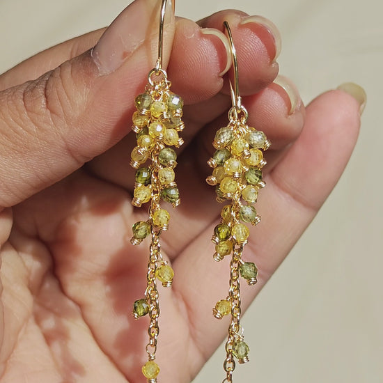 Inspired by autumn's golden and green leaves, Aurelia features lightweight CZ beads and 14K gold-plated metal for lasting shine. Effortless, elegant, and tarnish-resistant.
