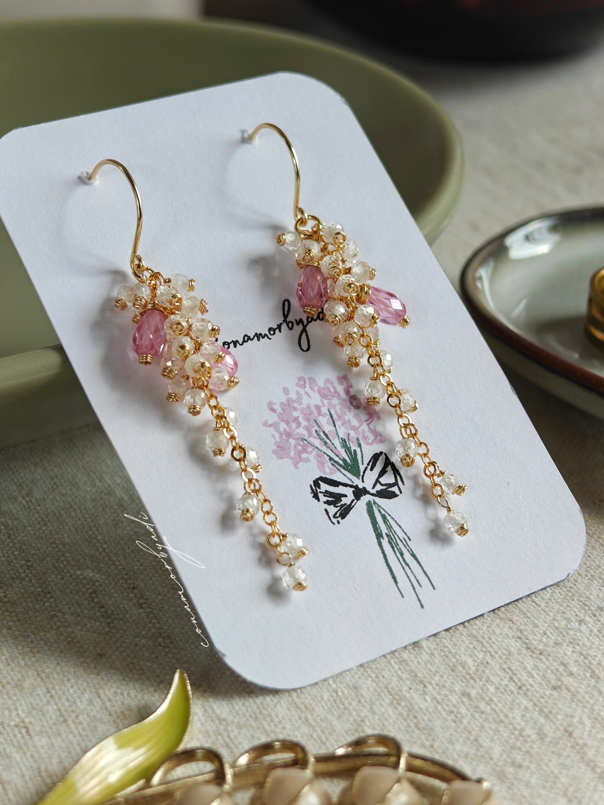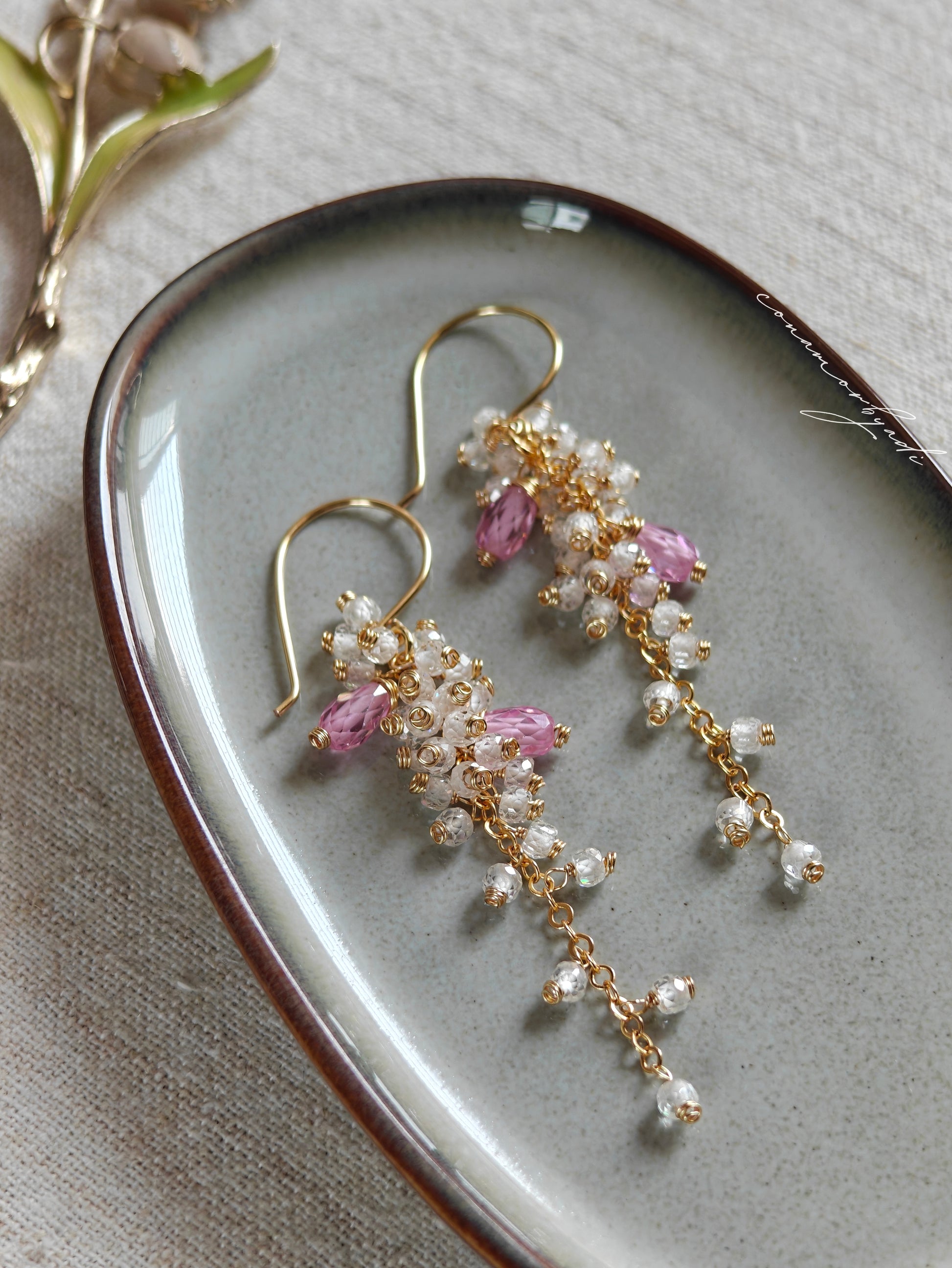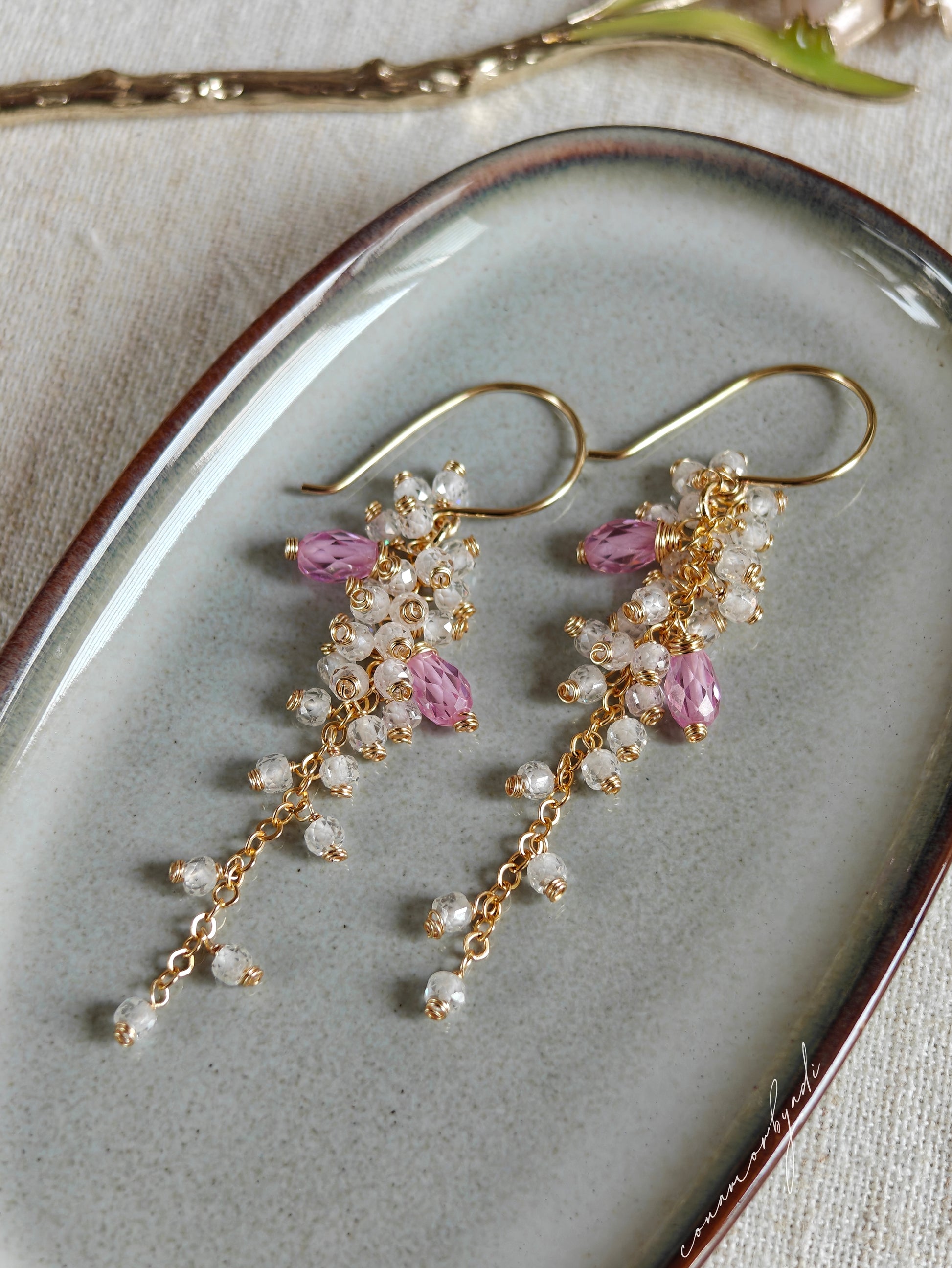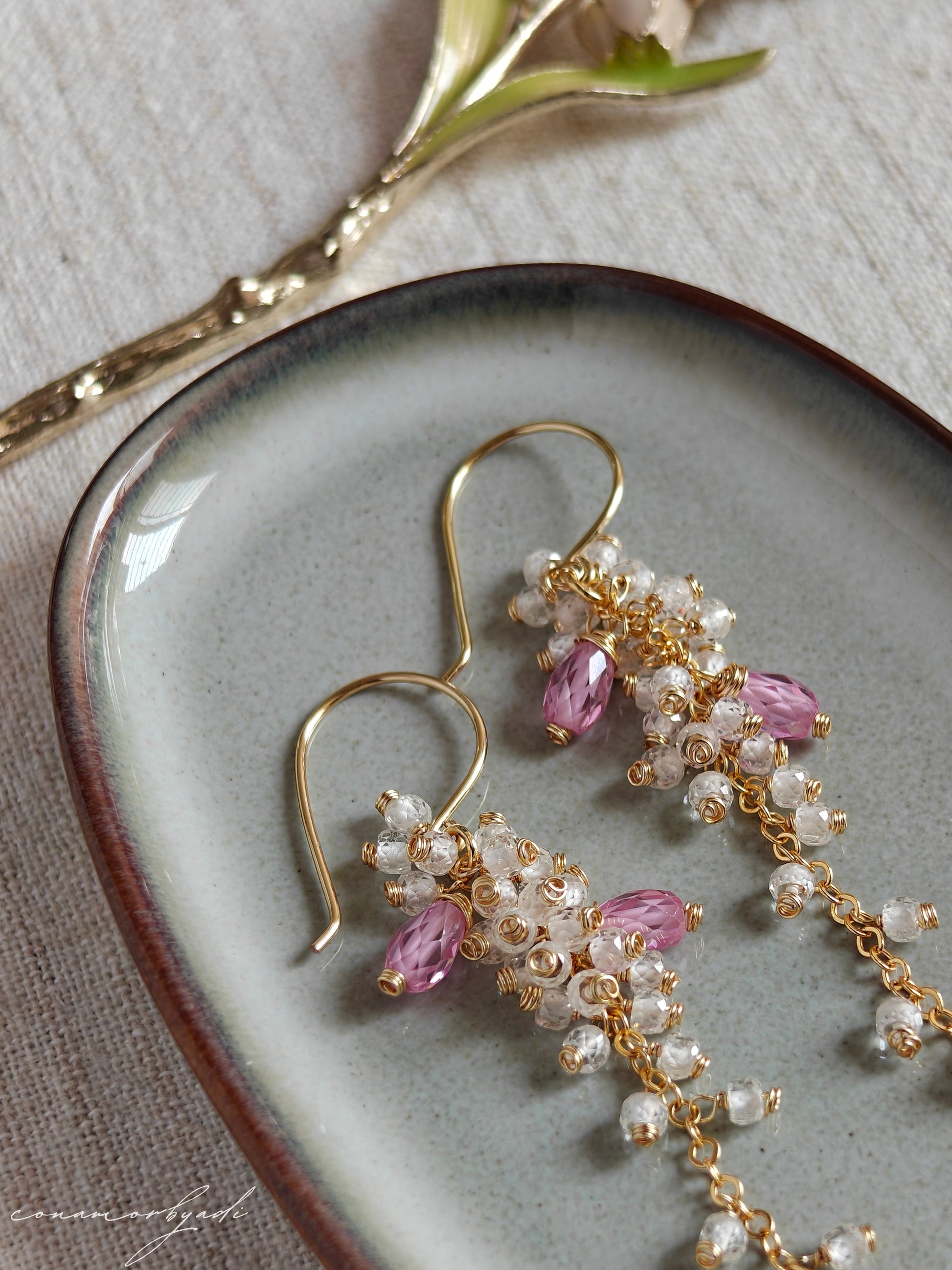 Featuring white CZ stones with a hint of pink, crafted with anti-tarnish materials for lasting shine.